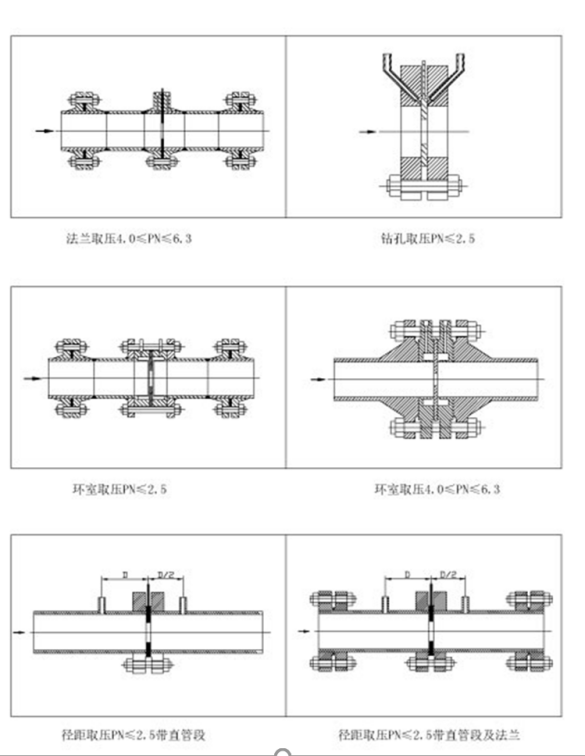 c、径距取压标准孔板,径距取压要求正压侧取压孔距离孔板前端面 1D,负压距离孔板前端面 0.5D,故订货时要求随货配套直管段,取压孔在直管段上加工出来,方便现场的安装。
