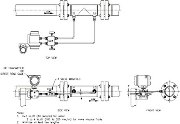 (2) 导压管应垂直或倾斜敷设,为了避免差压信号失真,正负压导压管应尽量靠近敷设,严寒地区导压管应做防冻处理。