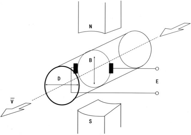 根据法拉第电磁感应原理,在与测量管轴线和磁力线相垂直的管壁上安装了一对检测电极,当导电液体沿测量管轴线运动时,导电液体切割磁力线产生感应电势,此感应电势由两个检测电极检出,数值大小与流量成正比例,其值为: