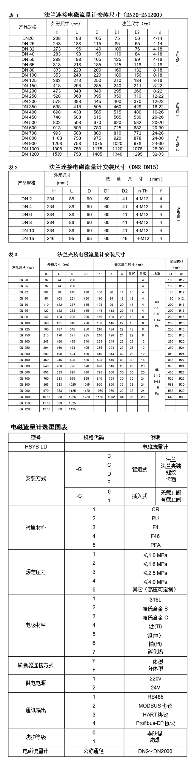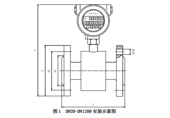 1.法兰连接式电磁流量计的结构尺寸和安装尺寸