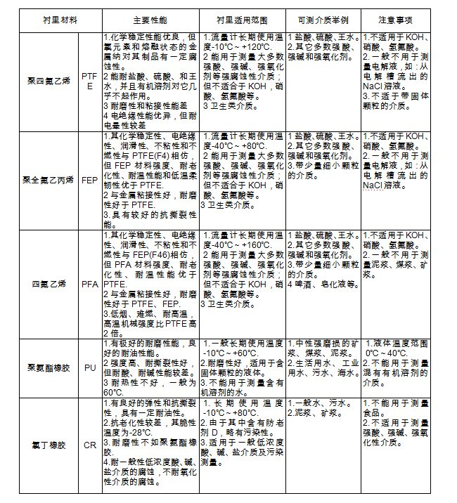 测量介质:水,污水,导电率大于5s/cm的液体,强酸强碱强腐蚀液体和泥浆矿浆纸浆等均匀的液固两相悬浮液体。