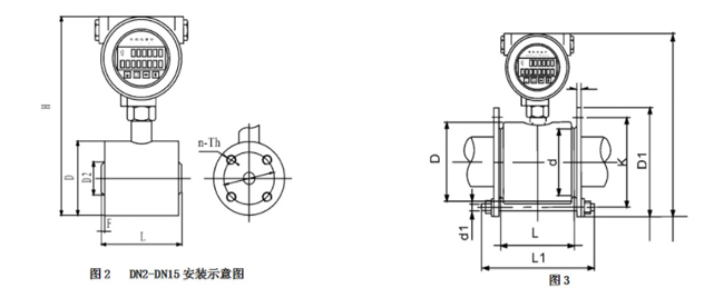 2.法兰夹装式电磁流量计的结构尺寸和安装尺寸
